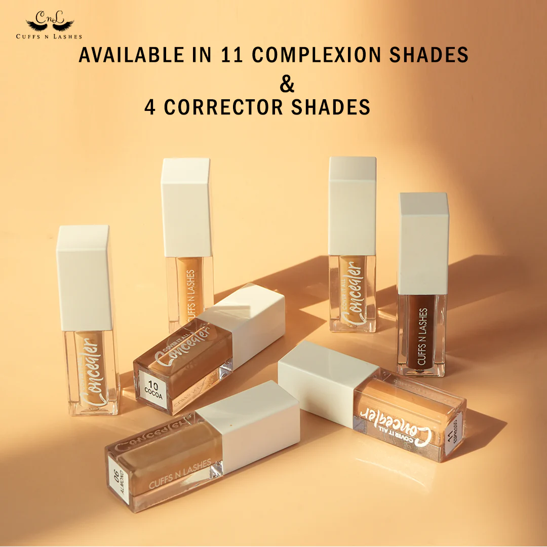 Achieve flawless, natural-looking skin with the Cuffs N Lashes Cover It All Liquid Concealer. This highly pigmented yet lightweight formula provides full coverage for dark circles, blemishes, and redness. Its smooth, blendable texture ensures a crease-free finish that lasts all day.